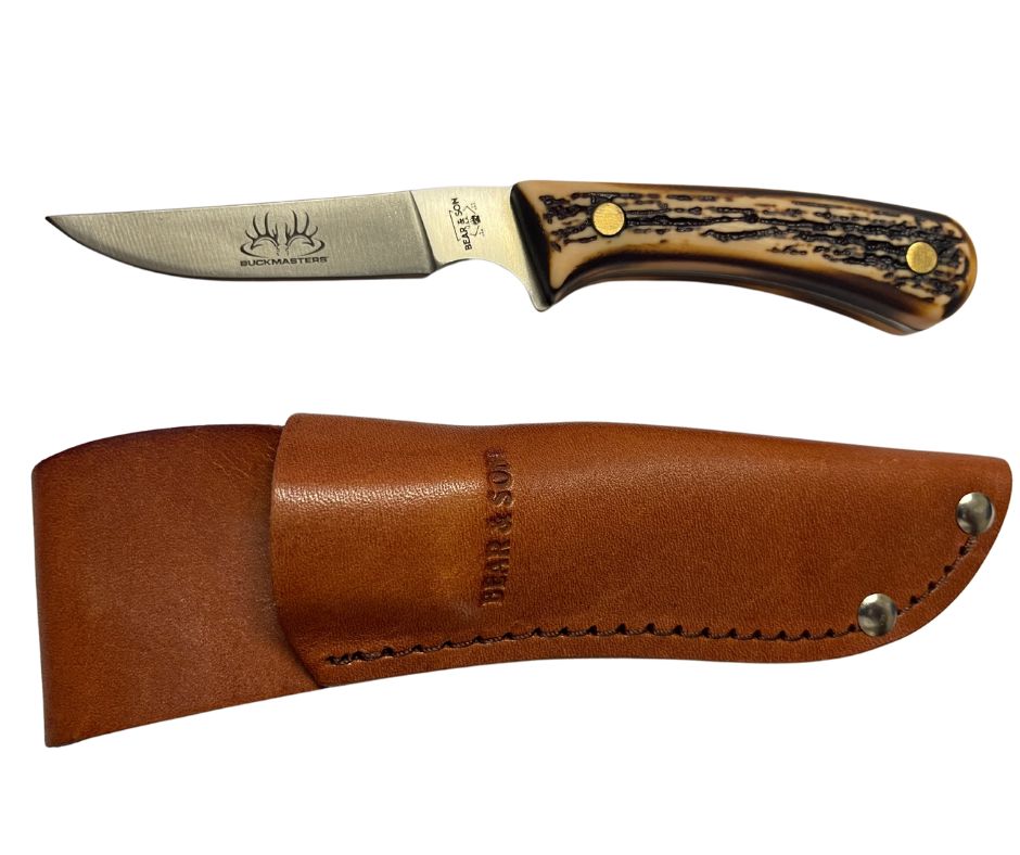 Bear & Son Cutlery 6 1/2 in. Stag Delrin Bird & Trout knife w/leather sheath and a One-Year Subscription to Buckmasters Print and Digital Magazine. Plus, $3.00 goes to support the Buckmasters Life Hunt. The Life Hunt gives kids with terminal illnesses and disabled veterans a chance to get in the woods and hunt.